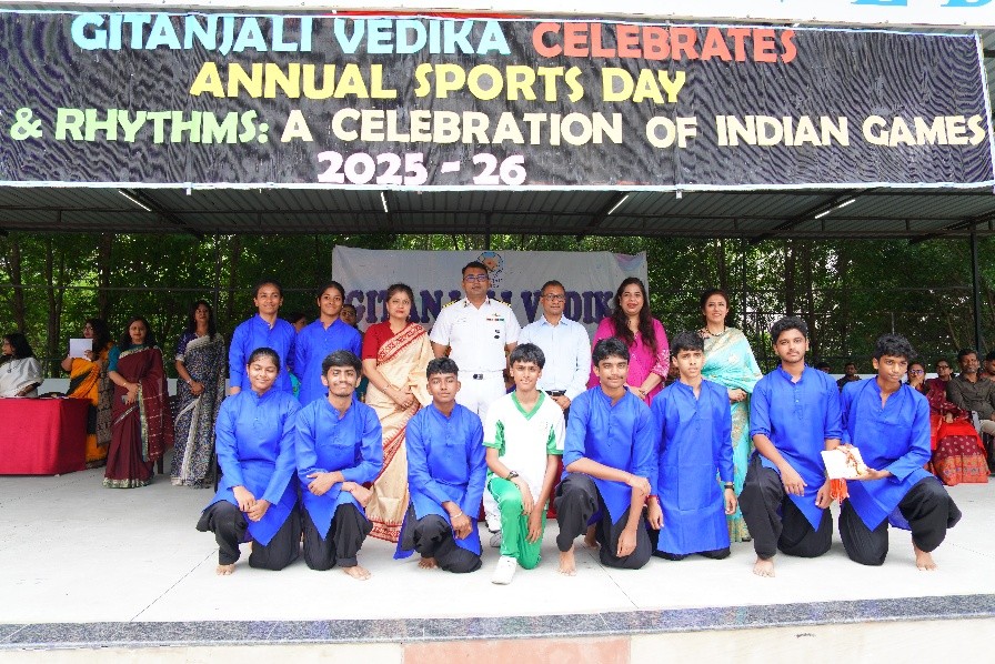 The spirit of tradition, energy, and unity shone brightly as Gitanjali Vedika School celebrated its Annual Sports Day – “Roots and Rhythm: A Celebration of Indian Games – Echoes of the Past, Energy of Today” on Saturday, 25th October 2025. The event beautifully reflected the school’s commitment to physical fitness, teamwork, and cultural heritage, blending the timeless charm of Indian games with the enthusiasm of modern-day sportsmanship.