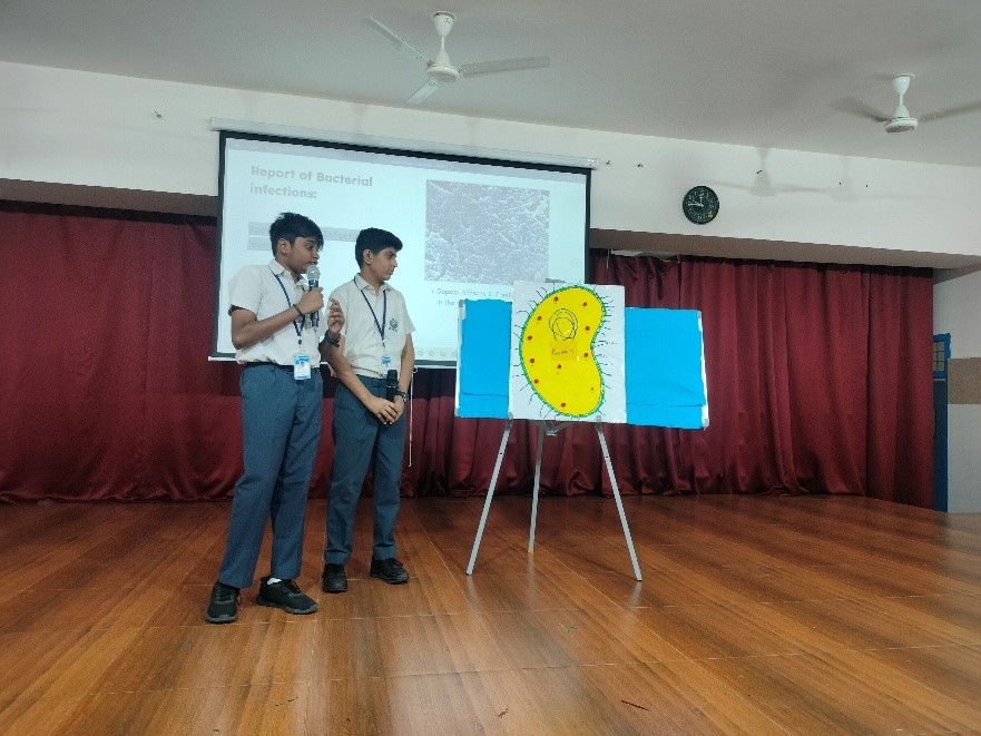 The day unfolded with a warm welcome address, a Math Prayer, and a delightful series of student presentations. Students of Grades 1 to 4 charmed the audience with performances highlighting the omnipresence of mathematics, while Cambridge students added colour with a lively dance and song. Students of Grade 5 showcased the mathematical essence in yoga postures through Surya Namaskar and presented an energetic dance on overcoming fear, including the fear of math. Students of Grades 9 and 10 captivated the gathering with models and projects on aerospace engineering and bacterial growth, demonstrating the practical applications of mathematics across disciplines.